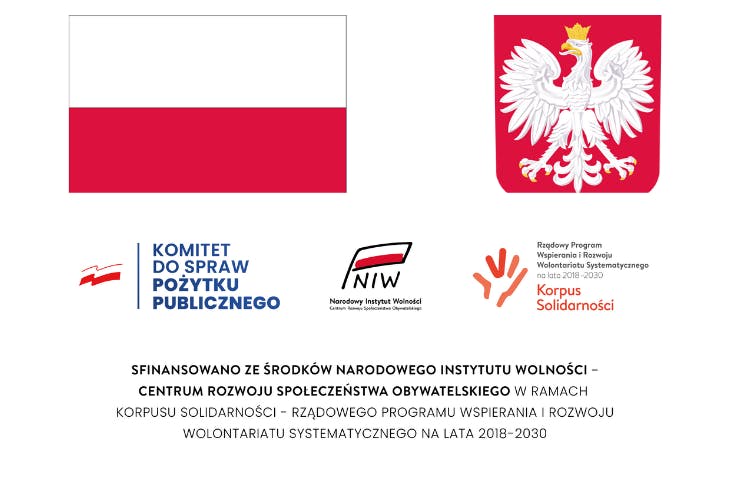 Projekt jest dofinansowany ze środków Korpusu Solidarności – Rządowego Programu Wspierania i Rozwoju Wolontariatu Systematycznego na lata 2018-2030.